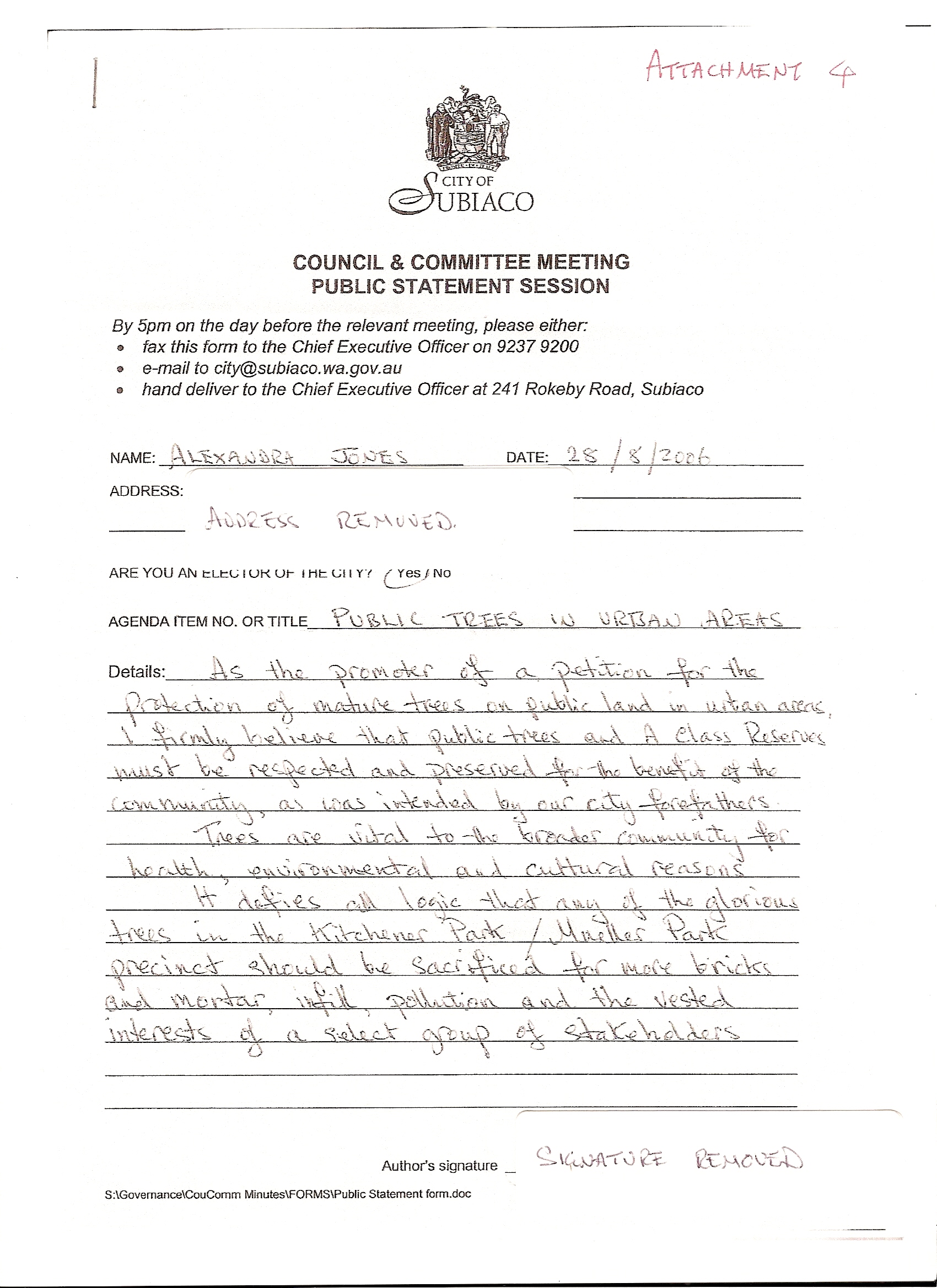 21. MARCH 2008 Letter to south perth Mayor regarding Box Trees in Milson St